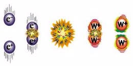 أثناء أبحاثه على قرائن الجسيمات المادية .